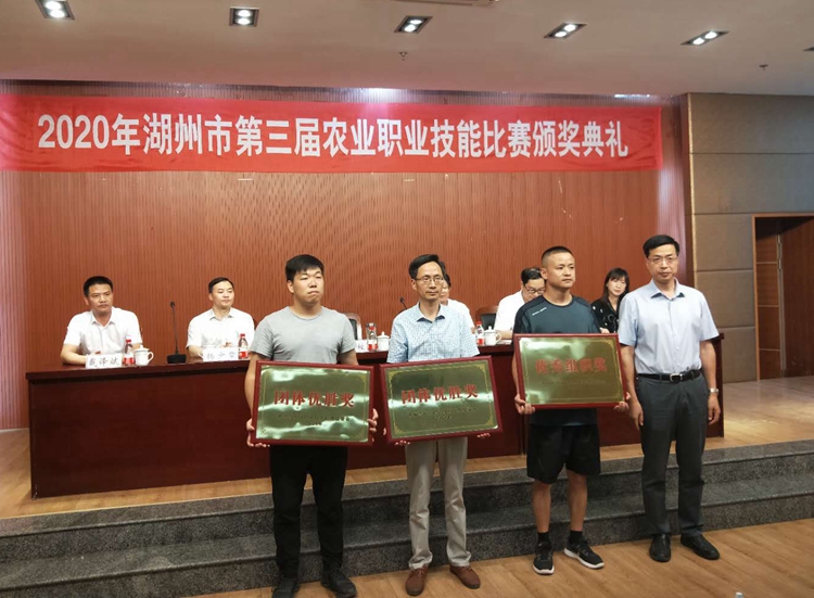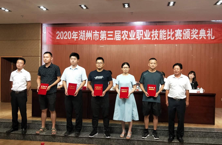 为大力倡导农业职业技能教育,全面弘扬工匠精神,广泛培育农业职业技能人才队伍,为我市乡村振兴示范区建设提供强大的人才支撑,8月12日,由市农业农村局、市人力社保局、市总工会和我校共同举办的2020年湖州市第三届农业职业技能比赛在我校举行。市农业农村局党委书记、局长杨中校,浙江省农广校校长王仲淼,市总工会副主席杨少章,我校副校长肖先波及有关领导为获奖选手颁奖。