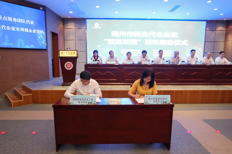 学校智能制造工程技术服务地方团队负责人、建筑技术专业服务团队负责人作为学校服务地方团队代表与浙江瀚强自动化设备股份有限公司、浙江中屹建设集团有限公司进行了签约。