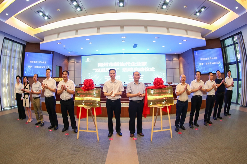 会上,李上葵、方新旗、陈永华、叶主共同为湖州市新生代企业家“圆梦”教育基金揭牌。