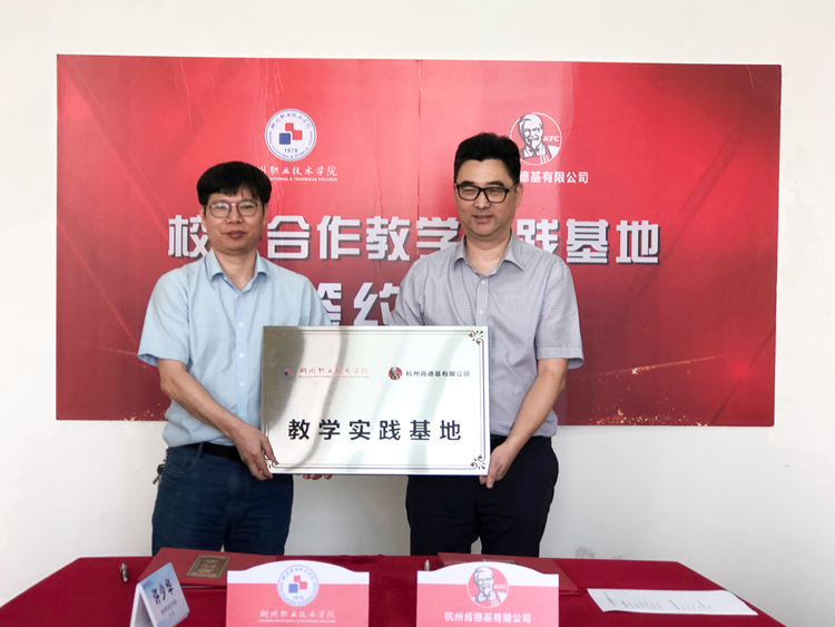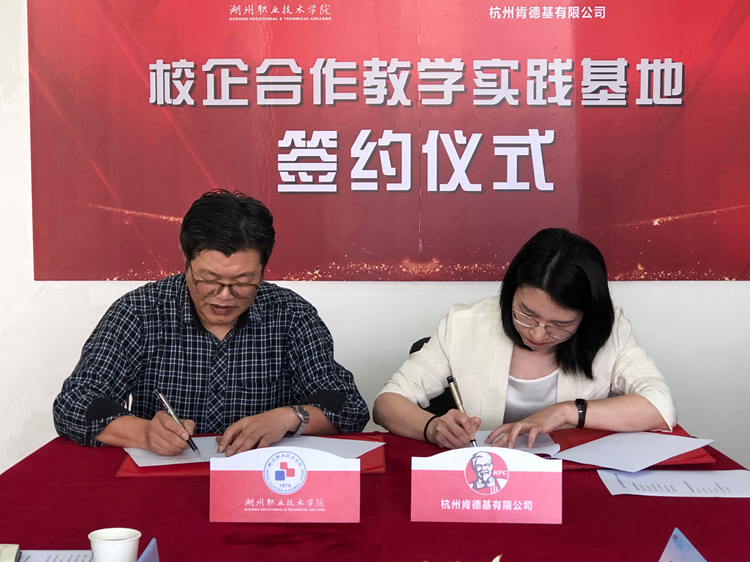 杭州肯德基人力资源部总监邱建雄,训练部主管钮王栋,湖州地区营运经理刘其悦以及物信学院党政班子成员、连锁经营管理专业教研室负责人等出席授牌签约仪式。仪式由杭州肯德基人力资源部招募主任李沁主持。