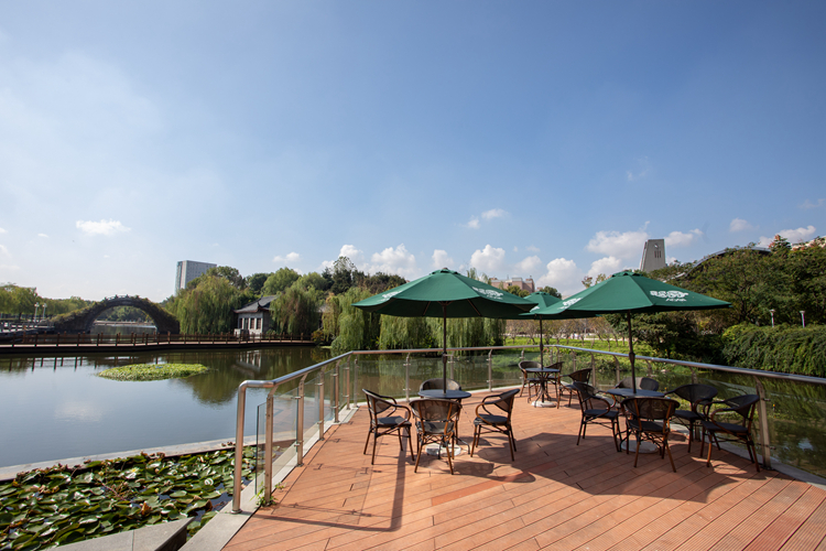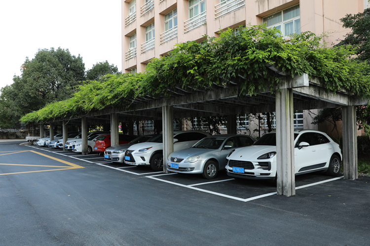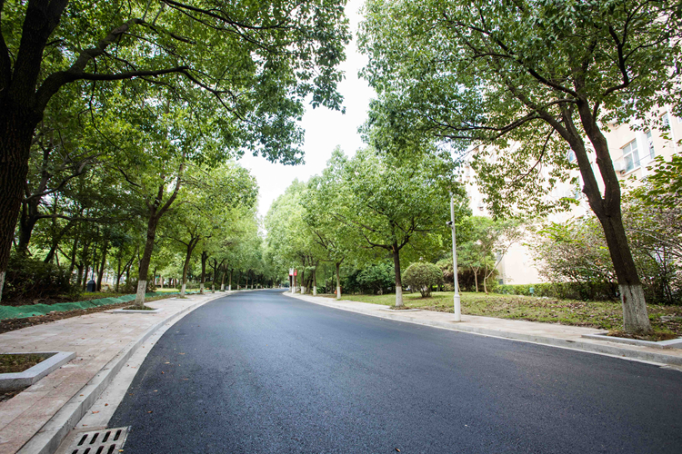 学校对校园机动车道进行了沥青面层的浇筑,荷兰砖人行步道改造成为了火烧面花岗岩,新造了彩色人行步道,在曲园路沿垂虹河一侧增设了栏杆。改建停车场2个,从新规划更新了校园机动车、非机动车车位线跟校园道路导向线。