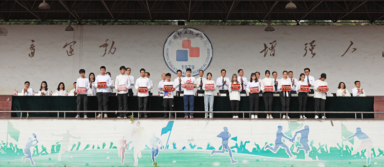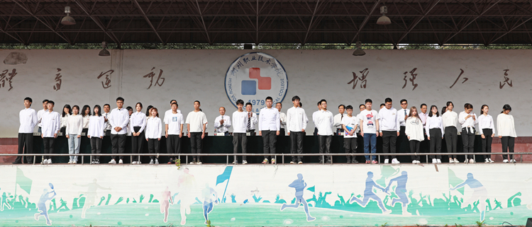 校党委书记周家健,校长沈建民等主席台领导为受表彰的学生代表颁奖,并为新生佩戴湖州职业技术学院校徽。熠熠闪光的校徽既是湖职人身份的象征,更是传承“崇德尚能”校训精神的信物。