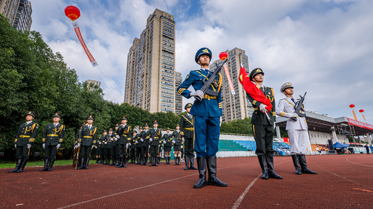 开学典礼在雄壮的国歌声中拉开帷幕。