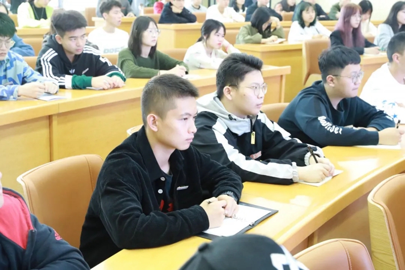 在讲座中,沈建民详细解读了习近平总书记关于职业教育的重要论述,介绍了近期国家、我省关于职业教育改革的有关方针政策。用翔实的数据和图表介绍了当前浙江省、湖州市产业布局情况,以及我校借鉴“双元”制,推进产教融合校企协同育人;依托实训基地,促进育训结合实践育人;构建课内外多元平台,引领学子成长成才的育人特色。他指出,国家对职业教育的重视程度前所未有,社会对高素质技术技能人才的需求程度前所未有,职业教育正经历深化改革的“窗口期”,迎来加快发展的“黄金期”。他鼓励新生要认清努力学习的方向,更好地谋划个人职业生涯规划。