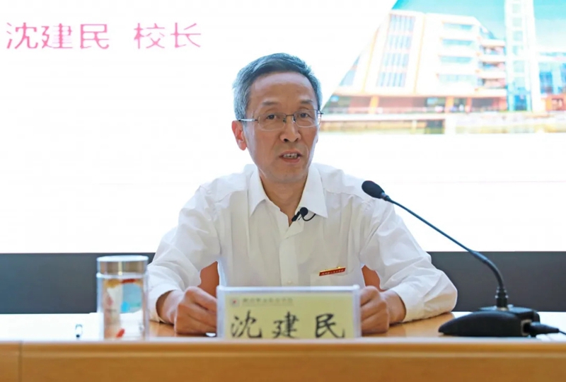 沈建民结合大学生公民道德的培育、践行,大学生全面发展的能力观、教育观,对“崇德尚能”校训进行了深入阐释,希望新生将“崇德尚能”校训内化于心,付诸于行,做明大德、守公德、严私德的新时代青年。要主动融入新时代,顺势而为、乘势前进,坚定理想信念、厚植爱国情怀,练就过硬本领,培养和践行“劳模精神”“工匠精神”,不负韶华,在新的征程中学业有成,谱写人生精彩的篇章。