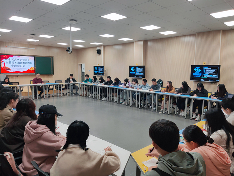 为纪念《共产党宣言》中文首译本出版100周年,10月21日,商贸与经济管理学院组织全体学生党员召开专题学习会,认真学习习近平总书记给复旦大学《共产党宣言》展示馆党员志愿服务队全体队员重要回信精神和《共产党宣言》中译本的翻译背景、主要内容及重要意义。