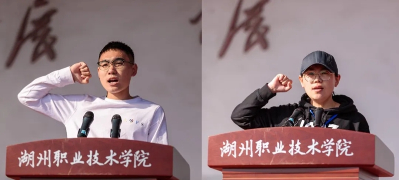 运动员代表、艺术设计学院杨坤同学,裁判员代表张璐琪老师郑重宣誓。