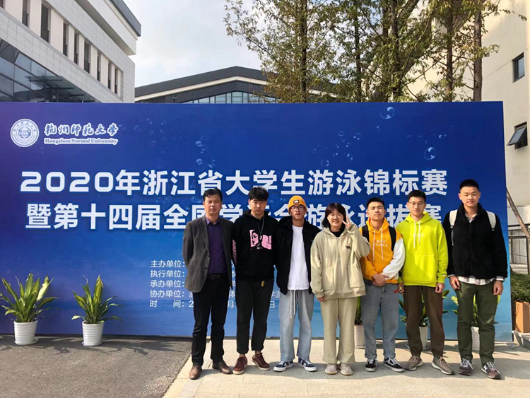 11月12日-11月15日,由浙江省教育厅、浙江省体育局主办,杭州师范大学、浙江省学校体育协会大学生游泳分会承办的2020年浙江省大学生游泳锦标赛暨第十四届全国学运会游泳选拔赛在杭州师范大学仓前校区举行。我校由姚应祥老师和刘震老师担任教练首次组队参加此项赛事。