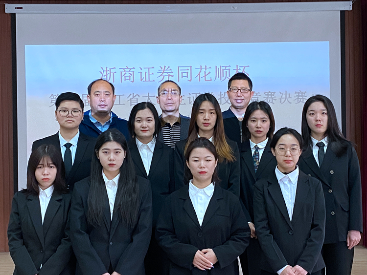11月21日,“浙商证券同花顺杯”第六届浙江省大学生证券投资竞赛团体赛决赛在浙江理工大学下沙校区落幕。来自全省高校共225支团队参加了4个类别(市场交易组、量化交易组、策略本科组、策略高职组)的决赛答辩。我校商贸与经济管理学院有3个团队晋级决赛,经过紧张激烈的角逐,3个团队均荣获一等奖。由胡国荣老师指导的投资1801班杨嫣丹、杨伟浩、夏勤艳组成的“3Y队”团队获得市场交易组一等奖,杨富民老师指导的投资1801班牛文静、庞林佳、施旭丹同学组成的“又是丰收年”团队获得市场交易组一等奖,姜世戟老师指导的网金1902班胡宇红、刘亦菲、花园园组成的“超车王”团队获得策略高职组一等奖。另外,董章清老师指导的郑翔、周联聪、金檑檑组成的“一骑绝尘”团队获得市场交易组三等奖。