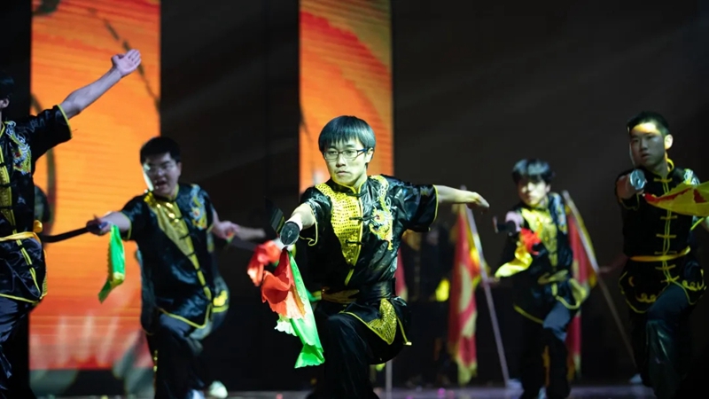 武术《武韵》功底深厚,引得台下观众惊喜连连;古典舞《花样年华》通过9位教职工的演绎告知全体师生要珍惜生活,活出精彩。晚会尾声,师生代表一齐高唱《再一次出发》。“新时代的号角中再一次出发,歌声和汗水一路挥洒,中国梦的旗帜下再一次出发,追梦的人们雄姿英发。”雄壮激越的旋律,有力地表达了湖职人奋力前行,永开新局的壮志豪情。