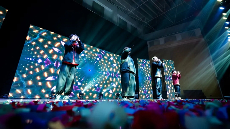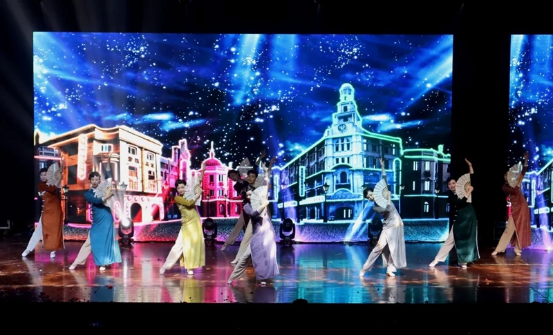 音诗画《我和我的祖国》、歌舞《华夏》、舞蹈《清平调》激发出每个人心中深沉而热烈的家国情怀;腰鼓歌舞《春潮颂》展现了伟大祖国繁荣昌盛的盛世景象;歌曲《新年快乐电台》、舞蹈《时候》彰显了年轻人对生命、对青春的热爱和赞颂;情景剧《拷问》、舞台剧《三癸亭》展现了湖职学子精湛的技能水平。朗诵《今年的春光》、现代舞《生命线》致敬了奋战在学校一线的师生及志愿者们。
