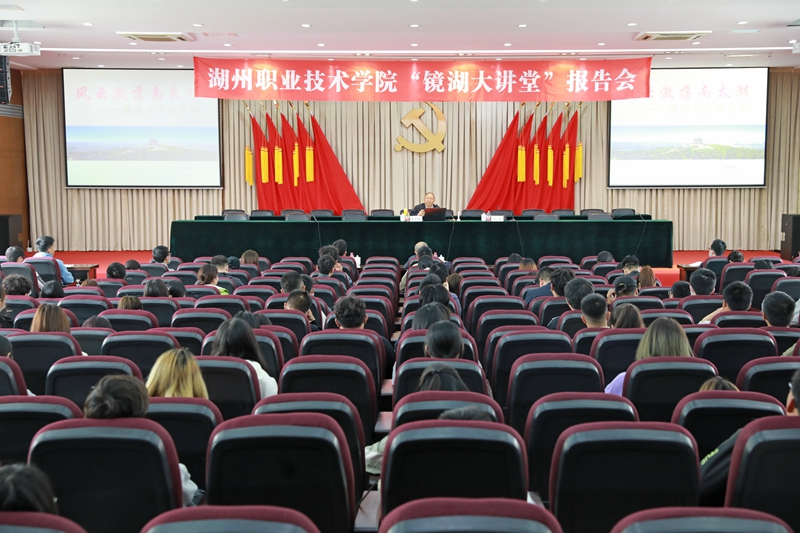 3月30日下午,我校“镜湖大讲堂”在致远楼1号报告厅举办学党史专题系列讲座第一讲,市委宣传部一级调研员张西廷为我校师生作题为“风云激荡南太湖——湖州与中共百年”的专题讲座,200余名师生代表聆听了报告。报告会由校党委副书记叶主主持。