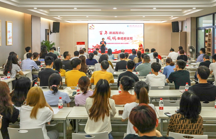 为庆祝中国共产党成立一百周年,鼓励引导全校广大师生深入学习贯彻习近平新时代中国特色社会主义思想,高标准、高质量开展好党史学习教育,5月10日下午,学校在党群服务中心学习大讲堂举办“百年潮涌践初心,砥砺奋进新征程”微型党课大赛。党委副书记叶主、党委组织部、党委宣传部、纪委办、党委教师工作部、教务处等职能部门负责人、思政理论教研部博士代表应邀出席并担任评委,各党总支负责人、组织员、党支部书记、学生发展对象代表等近100人现场观看比赛。