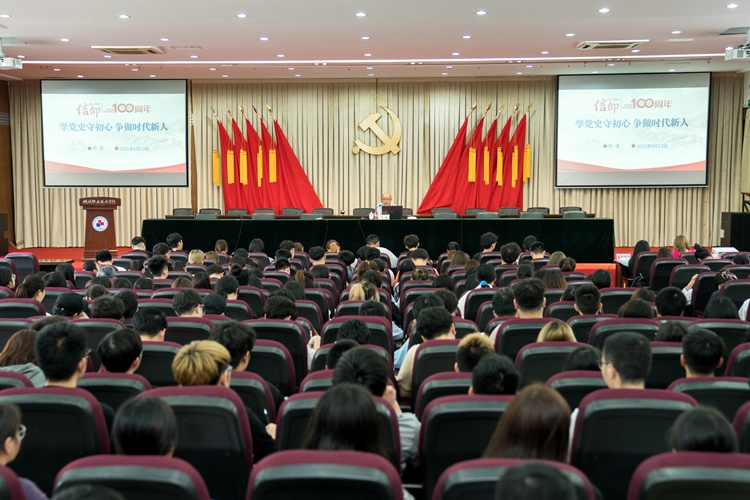党委副书记叶主为培训班学员作题为《学党史守初心,争做时代新人》的专题辅导报告,叶主从党史学习教育活动的意义与要求、中共百年党史是最好的教科书、中国共产党发展壮大给我们的启示和学党史守初心争做时代新人四个部分进行了系统性讲解。叶主指出,青年大学生要在学习党史中增强信心,赓续共产党人精神血脉;要在学习党史中明理增智,把握社会发展规律和方向;要在学习党史中赋能践行,练就报效祖国的过硬本领。