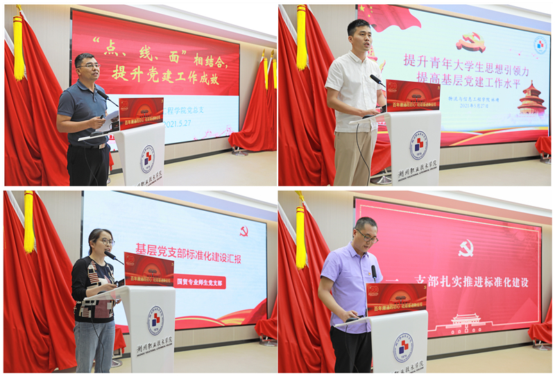 在交流发言环节,建筑工程学院党总支书记刘青春提出从“点”入手强化党组织的战斗力,把“线”连紧强化党组织的组织力,全“面”融合强化党组织的凝聚力;物流与信息工程学院党总支副书记林靖介绍了打造“新时代文明实践大学生宣讲团”党建品牌的经验做法,商贸与经济管理学院国贸专业师生党支部书记王群飞通过组建“党建+专业”教师团队,推进党建工作与专业建设工作相融合,引领专业发展更加出彩;旅游与公共管理学院学生第一党支部书记梁皓从公益积“斤”大学生公益志愿者团队建设出发,以新时代文明实践擦亮服务型党支部名片。