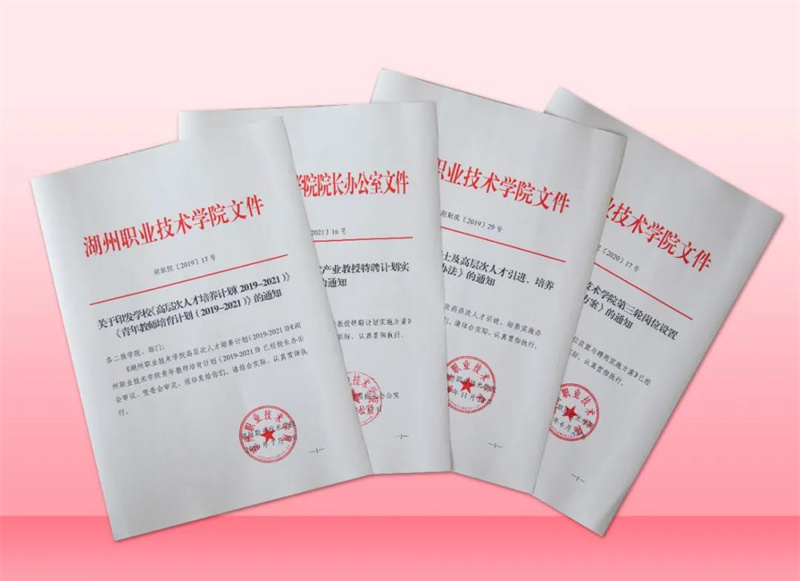 贯彻落实湖州市“人才强市”战略,每年推出提质增效的人才新政,加速高层次人才引培,聚焦学校智能制造、休闲旅游等重点建设专业群,加速集聚一批匹配南太湖区域地方产业发展的专业亟需高端人才。持续推进“高层次人才培养计划”,引培10名以上省级教学名师、技术技能大师、专业带头人等省内外有影响力的卓越领军人才。