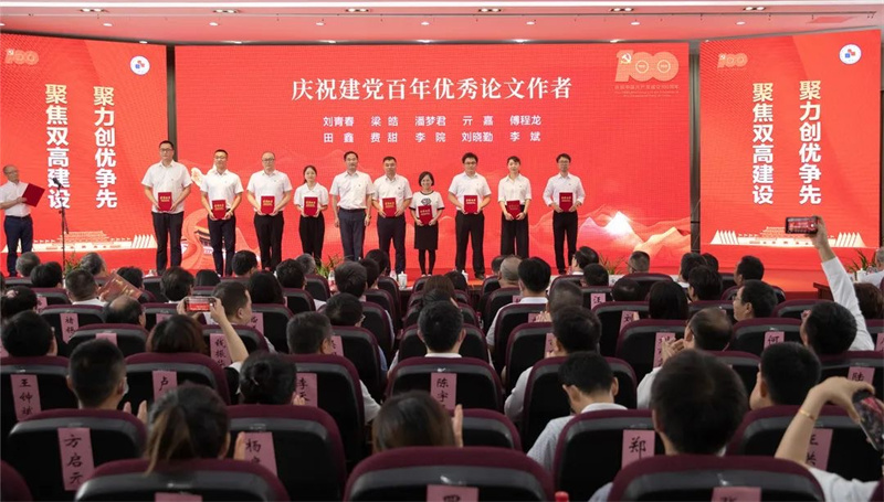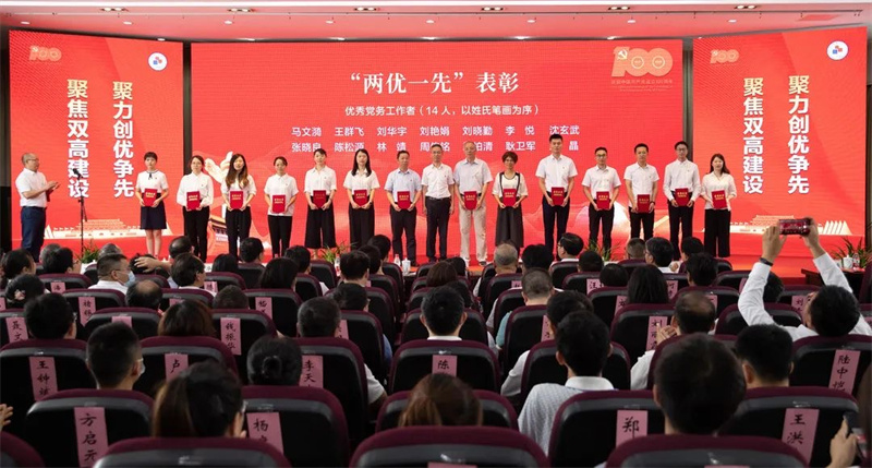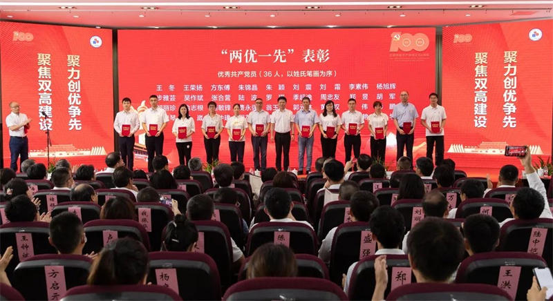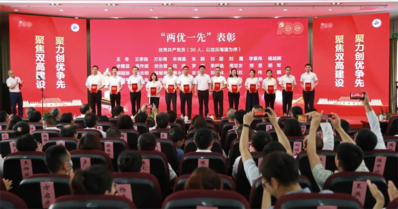 6月25日下午,伴随着庄严的国歌声,“铭记光辉历程·凝聚奋进力量”湖州职业技术学院庆祝中国共产党成立100周年表彰大会隆重举行。校党政领导班子成员、老领导、“光荣在党50年”老党员代表、“两优一先”荣誉获得者、全体中层干部、民主党派、知联会负责人、各级基层党组织书记、教职工及学生党员代表出席表彰大会。大会由校党委副书记叶主主持。