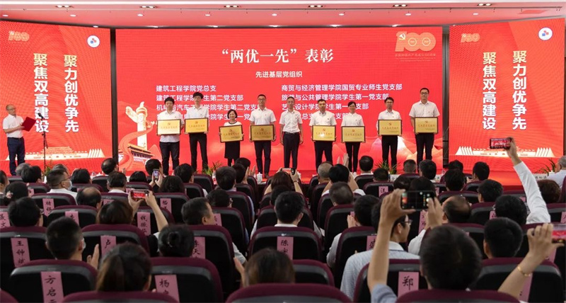 会上,校党委书记周家健为老党员代表颁发“光荣在党50年”纪念章,为获得校“优秀共产党员”荣誉称号的同志颁奖。校党委副书记、校长沈建民为获得校“优秀党务工作者”荣誉称号的同志和获得校“先进基层党组织”称号的集体代表颁奖。校纪委书记查建华为庆祝建党百年优秀论文作者颁奖。