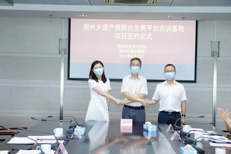 8月10日,我校与吴兴区交通旅游投资集团签订“湖州乡旅产教融合发展平台实训基地项目”校企合作协议,校长沈建民,吴兴区委常委、统战部长费屹巍,区交旅投董事长钟俊英,副校长陆勤丰,八里店镇、区文广旅体局相关领导,旅游与公共管理学院、科技与地方合作处相关负责人等参加签约仪式。