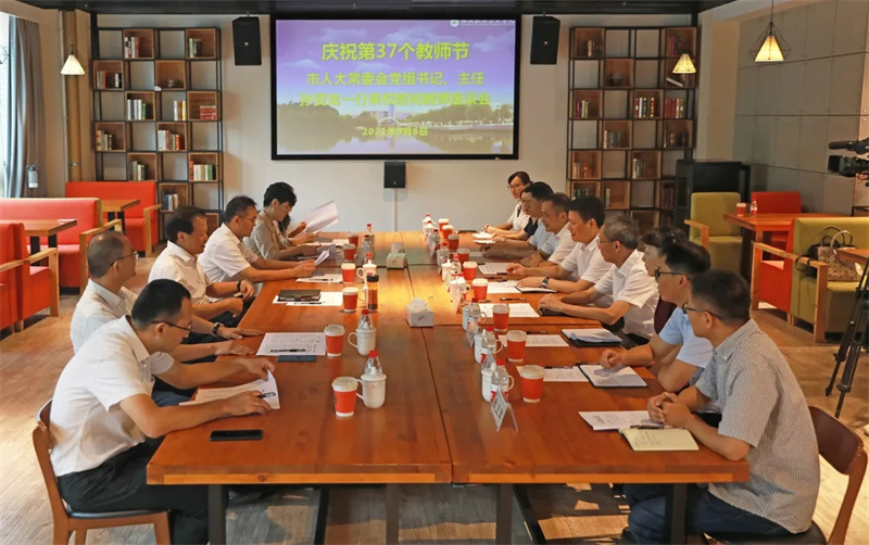 9月6日,在第三十七个教师节来临之际,市人大常委会党组书记、主任孙贤龙、市人大常委会秘书长施会龙、市人大教科文卫主任委员、市人大常委会教科文卫工委主任许建跃、市教育局党委书记、局长金淦英以及市相关部门负责人一行来到我校进行教师节慰问。校党委书记周家健、校长沈建民、副校长陆勤丰陪同。