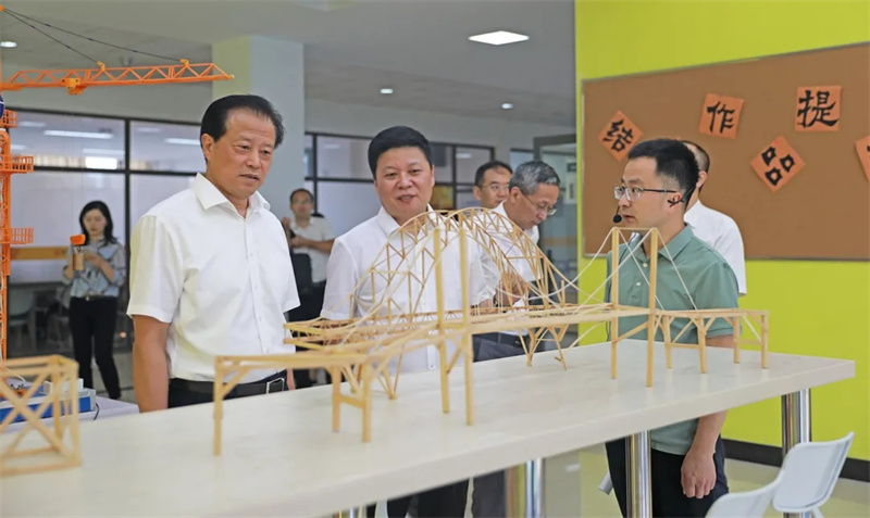 孙贤龙一行还实地参观了我校党群服务中心、大学生服务中心以及建筑工程学院实训中心,对学校的各项建设工作给予了肯定。