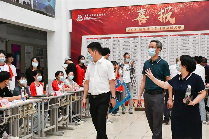 一大早,校党委书记周家健,校长沈建民,校党委副书记叶主及各二级学院、部门领导纷纷亲临迎新现场,深入各流程服务点了解新生报到情况,看望2021级新生,亲切问候工作在迎新一线的教职工和学生志愿者们,代表学校感谢大家的辛勤付出。周家健在走访迎新现场时强调,迎新工作是秋季学期一项重要工作,要提升服务质量和水平,为新生营造温馨有序的报到环境,“湖职院是个成长成才的好地方”,他叮嘱新生要珍惜青春时光,尽快适应、合理规划大学生活,努力成长为国之栋梁。