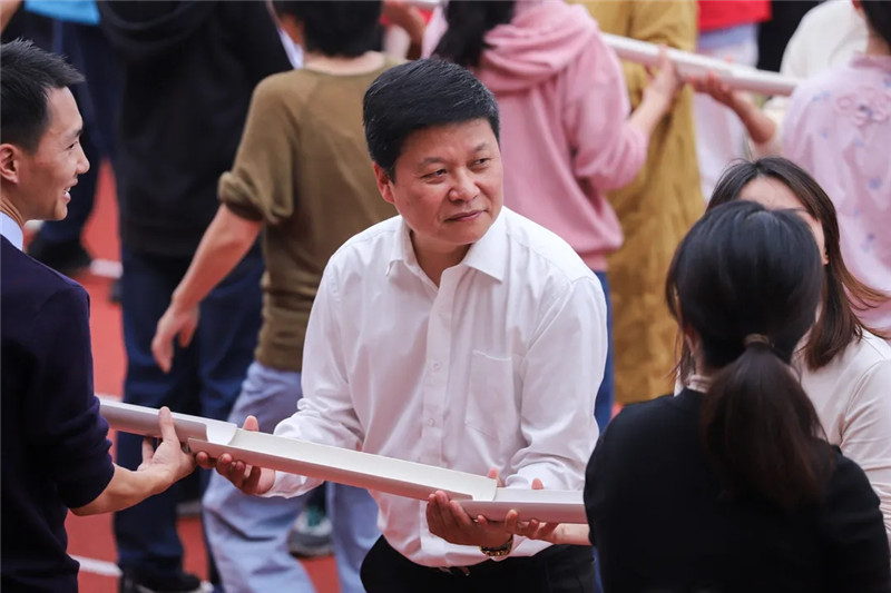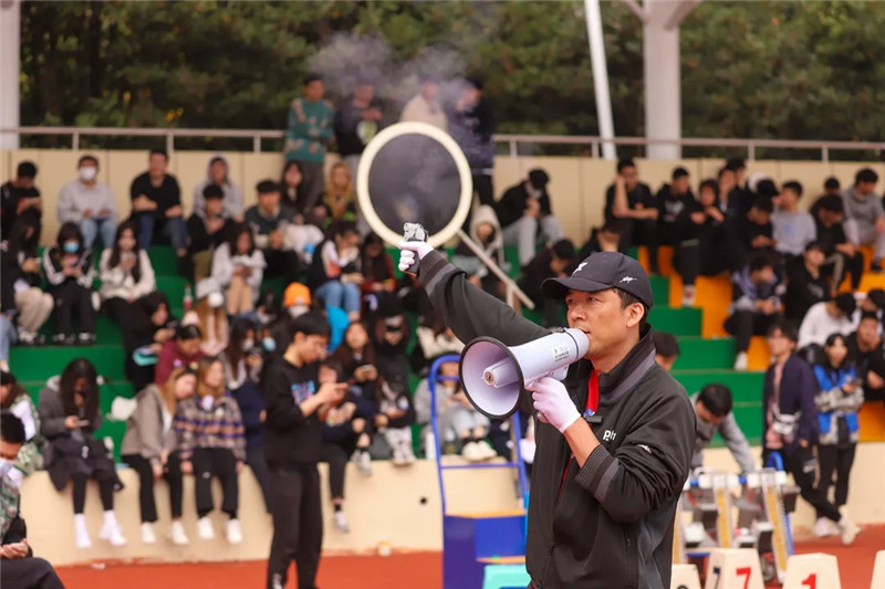 叶主致闭幕词并宣布湖州职业技术学院第二十二届田径运动会胜利闭幕。在致辞中他表示,一年一度的运动会,既是对学校体育工作成效的一次大检阅,更是全体师生身体素质、运动技能、意志品质等综合素质的全面展示。学校将坚持健康第一的教育理念,践行“德育为先、能力为重、全面发展”的育人观,积极推动大学生文化学习和体育锻炼协调发展,帮助学生在体育锻炼中享受乐趣、增强体质、健全人格、锤炼意志。他希望全体师生要把在运动会上展现的竞争意识、自尊自信、拼搏向上和团结合作的精神继续发扬,融入到今后的工作、学习和生活中去,不畏困难,不断超越,以强健的体魄和良好的心态,为学校事业的高质量发展再创佳绩、再立新功。(文/高铮 摄/郑强 校融媒体中心)
