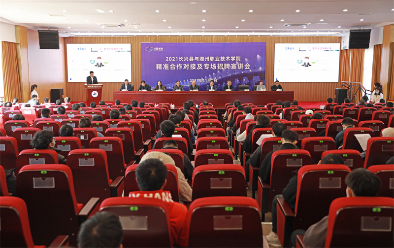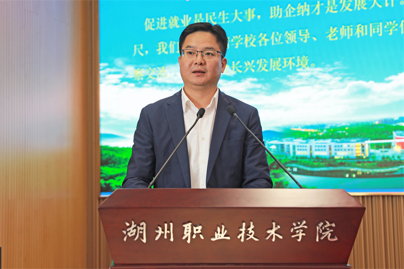 沈洪峰代表长兴县委县政府作县情推荐。沈洪峰指出,长兴是全市工业经济尤其是智能制造等产业的排头兵,与湖职院的办学特色和专业优势高度契合。他从兴业福地、兴产热土、兴盛新城三个视角全面概括了长兴的各项优势等,希望通过本次活动打响校地合作品牌,开创政校企合作共赢新篇章。董鸣详细介绍了高职毕业生赴长兴就业创业的相关人才政策。