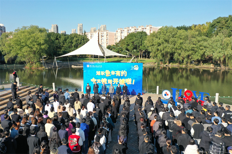 沈建民宣布湖职“鱼”你有约活动正式开始。