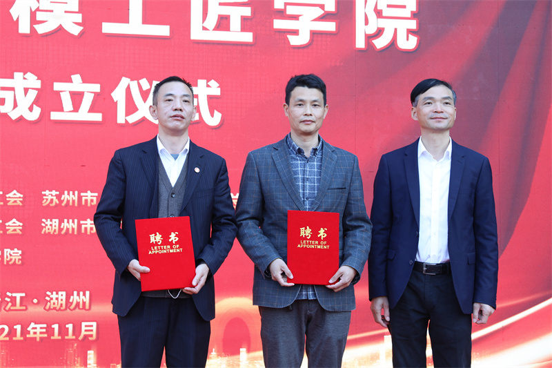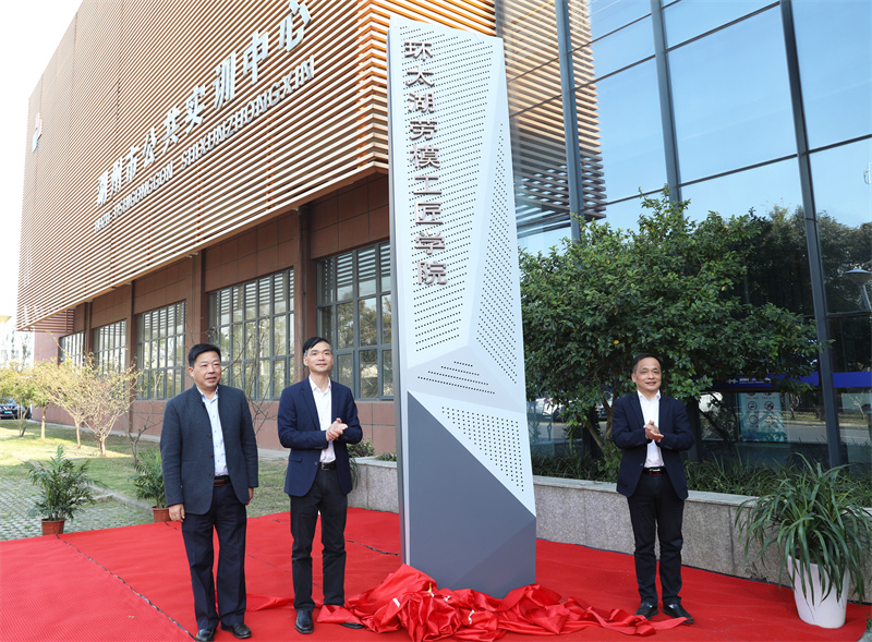 朱剑梁、史淦宝、陆勤丰共同为“环太湖劳模工匠学院”揭牌。