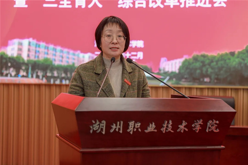 周家健强调,要进一步聚力发力,抓住关键,突破重点难点。一要聚力队伍能力建设。继续配齐配强思政专职教师队伍、辅导员队伍和专任教师队伍,强化思政工作队伍的能力培训,优化教师考评体系。二要聚力特色项目培育。要充分发挥“三地一窗口”的育人资源优势,湖州“绿水青山就是金山银山”等思政元素,以项目为抓手,积极打造育人品牌,探索形成省内有一定影响力、可示范、可借鉴、可推广的湖职样本。三要聚力内涵质量提升。聚焦发挥课堂主渠道作用,双向强化思政课程和课程思政改革,加快推进学生工作信息化建设,聚焦公寓管理、文明创建等薄弱环节,完善制度机制,提升整体水平。