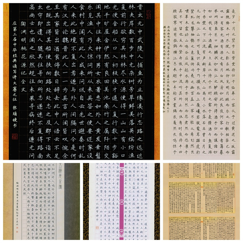 省赛阶段,在大学生硬笔组,张瑶婕同学创作的《桃花源记》、顾梦婷同学创作的《小石城山记》获一等奖,赵钰同学创作的《五柳先生传》获二等奖,刘丽佳同学创作的《后赤壁赋》、杨�B妍同学创作的《卖柑者言》获三等奖。在大学生软笔组,朱俊元同学创作的《毛泽东诗词选抄》、汪曼笛同学创作的《水调歌头·游泳》、舒心:《清风阁记》获一等奖,曾铤明同学创作的《沁园春·雪》、徐佳��同学创作的苏轼《洞庭春色赋》获二等奖。在教师软笔组,沈文中老师创作的《东坡美文》获一等奖。