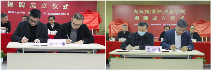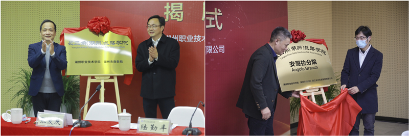 启动仪式上,我校和湖州市商务局签署了校地合作共建“长三角(湖州)丝路学院”框架协议,机电与汽车工程学院和浙江永达实业集团有限公司签署了校企合作共建“长三角(湖州)丝路学院安哥拉分院”框架协议。随后由合作双方代表分别为两所丝路学院揭牌,安哥拉会场也通过直播进行了丝路学院安哥拉分院的同步揭牌。