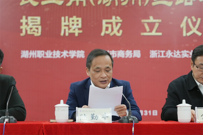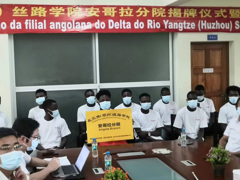 12月31日下午,长三角(湖州)丝路学院揭牌成立仪式暨首次跨境“云培训”在我校举行。湖州市商务局党委委员、副局长金明龙,浙江永达实业集团有限公司党委书记、董事长张发庆,我校副校长陆勤丰,市、县商务局相关部门负责人,我校外事与港澳台办、教务处、科技与地方合作处、机电与汽车工程学院负责人,教师代表等参加揭牌启动仪式。浙江永达安哥拉公司和几内亚比绍基地40余名中非员工在遥远的非洲同步进行“云揭牌”和“云培训”。