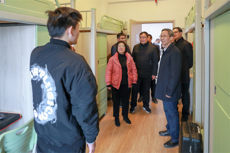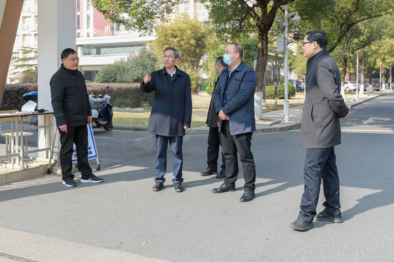 为贯彻落实省教育厅校园安全稳定工作视频会议精神,进一步严格落实安全管理责任,扎实做好期末及寒假期间校园安全稳定工作和新冠肺炎疫情防控工作,1月13日下午,校长沈建民带队开展校园安全稳定工作专项检查。副校长李起潮、肖先波及相关职能部门负责人参加。
