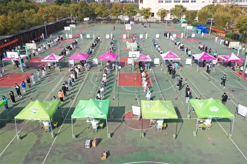 来自全校的教师志愿者、后勤工作人员、现场网格员等认真参与场内秩序维护,待检测师生井然有序。在各部门的密切协作下,整个检测过程在两个半小时内高效、顺利地完成。