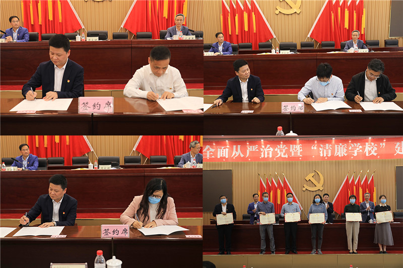 会上,周家健与党政班子成员和二级学院、部门负责人代表签订了《2022年全面从严治党工作暨清廉学校建设责任书》,校纪委聘请了新一批特邀监督员。