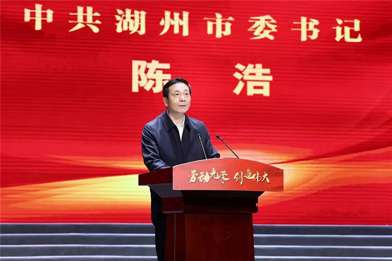 湖州市委书记陈浩出席大会并作重要讲话。陈浩代表市四套班子向受表彰的先进集体和先进个人表示热烈祝贺,向全市各条战线上的劳动者致以节日问候和崇高敬意。他说,精彩蝶变源于不懈耕耘。这些年,在党中央和省委、省政府的坚强领导下,全市上下�哿ν�心、创新实干,推动湖州高质量赶超发展进入快车道,迎来了前所未有的高光时刻。亮眼的成绩单背后,凝结着广大劳动人民的心血和汗水,特别是受表彰的劳模先进,在各自平凡岗位上干出了不平凡的业绩,你们是当之无愧的功臣。美好愿景要靠奋斗实现。当前,全市上下正在深入贯彻市第九次党代会和市两会精神,朝着奋力建设绿色低碳共富社会主义现代化新湖州的宏伟目标阔步前进。希望广大劳动者在新时代新征程中,以昂扬的斗志、奔跑的状态、务实的作风,争做生产的能手、技术的标兵、劳动的模范,再造一个激情劳动、激情创业、激情筑梦的火红年代。时代新风需要榜样引领。广大劳动者要高举习近平新时代中国特色社会主义思想伟大旗帜,争当忠诚拥护“两个确立”、忠实践行“两个维护”的排头兵,大力弘扬劳模精神、劳动精神、工匠精神,让“劳动最光荣、劳动最崇高、劳动最伟大、劳动最美丽”蔚然成风。