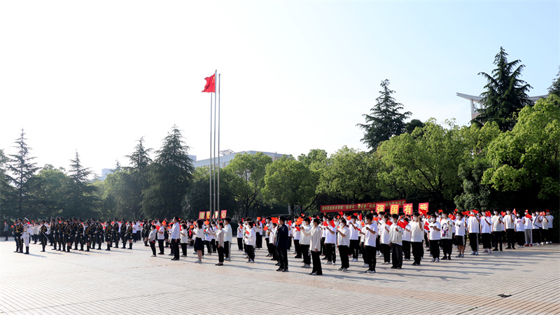 为迎接党的二十大顺利召开,庆祝中国共产主义青年团建团100周年和“五四”运动103周年,进一步组织青年团员学习青年运动的光辉历程,深入学习贯彻习近平总书记关于青年工作的重要论述精神,弘扬“爱国、进步、民主、科学”的五四精神,引导广大青年团员坚定理想信念,赓续红色基因,教育引导我校共青团员及先进青年坚定不移听党话、跟党走,5月4日清晨,学校在傲骨广场举行“新青年·耀青春”纪念五四运动升国旗仪式。校团委委员、辅导员代表、青年团员代表300余人参加此次活动,活动现场严格遵守学校疫情防控要求。