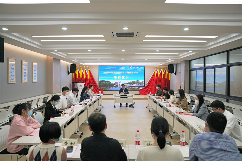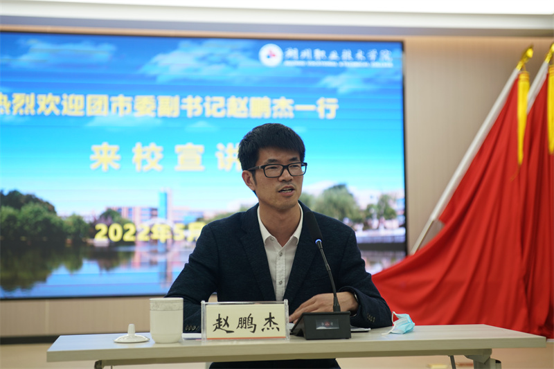 校党委副书记叶主代表学校感谢团市委一直以来对学校共青团工作的支持。叶主表示,学校党委历来高度重视学校共青团工作,定期听取共青团工作汇报,深入推进共青团改革,重视团干部队伍建设,关心团学活动开展情况。赵鹏杰对我校共青团工作给予高度评价,感谢学校对于团工作的关心和支持,希望能够在留湖就业、志愿服务、技能竞赛等方面继续加强合作,搭建平台。