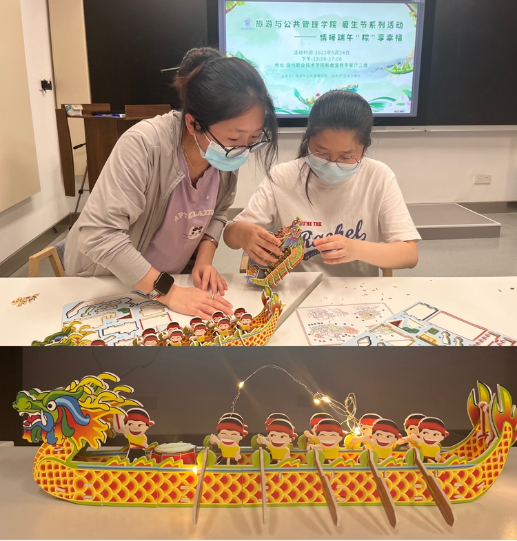 赛龙舟是端午节的习俗,也是端午节最重要的民俗活动之一。在疫情防控常态化背景下,以手工制作赛龙舟拼图代替端午传统的龙舟比赛,同学们热情高涨,心灵手巧,转眼间,一个个“龙舟”活灵活现。