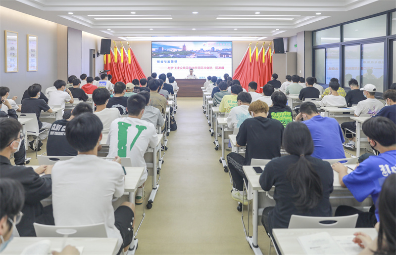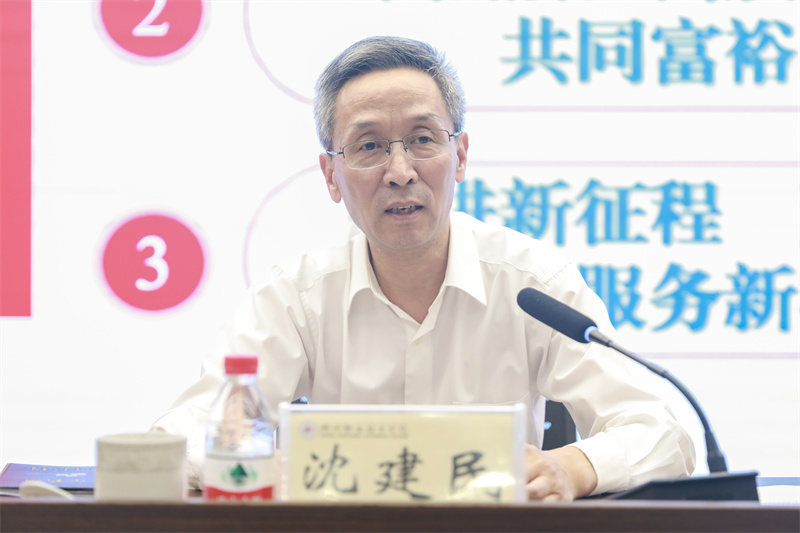 沈建民从基础优势、发展目标、实践路径三个方面向在场的同学传达了《中共中央国务院关于支持浙江高质量发展建设共同富裕示范区的意见》的要求和精神。高质量发展建设共同富裕示范区是党中央赋予浙江的光荣使命,他希望同学们很好地了解浙江省探索推动共同富裕的改革举措,更好地去学习和创业就业,与浙江建设共同富裕示范区共奋进、同发展。