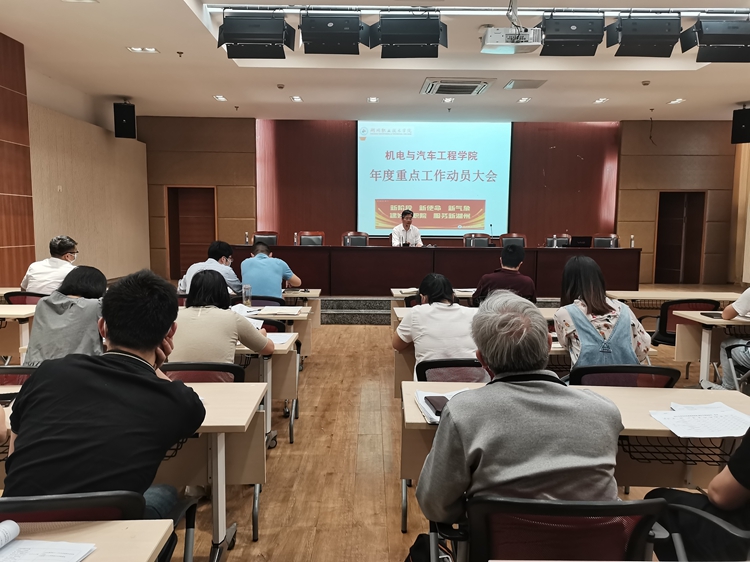 为落实学校年度重点工作会议精神、以及学校全体干部大会精神,贯彻2022年学院责任目标,巩固督导评估成果、进一步明细责任,促进整改提升,5月26日下午,机电与汽车工程学院召开学院重点工作动员会议,学院全体教职工参加了本次会议。