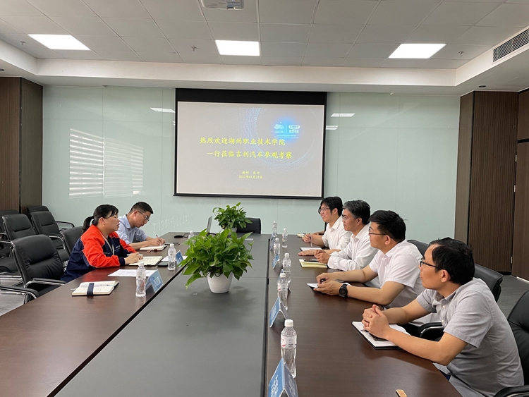 调研期间,机电学院一行现场走访了吉利焊装车间、总装车间、吉利汽车大学等,听取了相关人员关于吉利未来工厂设计理念、焊接机器人生产线运行过程等介绍,机电行政负责人表示在工业机器人技术、新能源汽车技术等相关专业具有校企共建课程的很大空间,双方就资源建设开展了深入交流。