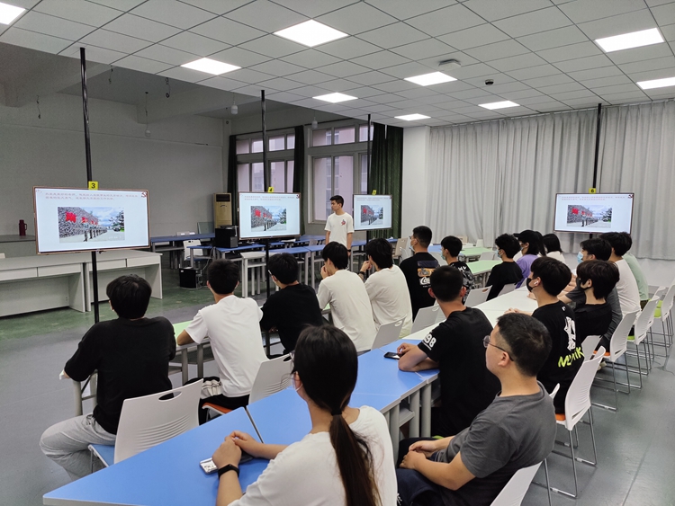本次军旅生活分享交流会,王宇恒同学以自身的经历讲述了作为一名新兵进入新兵训练基地之后的一系列生活和感受,他说:“青春是用来奋斗的,我不想让青春留下遗憾,当兵让我知道了,什么叫责任,什么叫担当,什么叫荣誉,什么叫辉煌”。李海鹏同学从拉练、站岗、救援、阅兵等方面带大家感受了一次难忘的红色军旅岁月,点燃了在场同学们内心的参军梦、报国情。