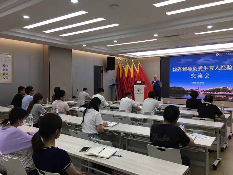为进一步加强和改进新时代思想政治工作,交流爱生育人经验,6月1日下午,学校举办优秀辅导员爱生育人经验交流会。校党委副书记叶主、学生处负责人、各二级学院学生工作负责人、全体辅导员参加会议。