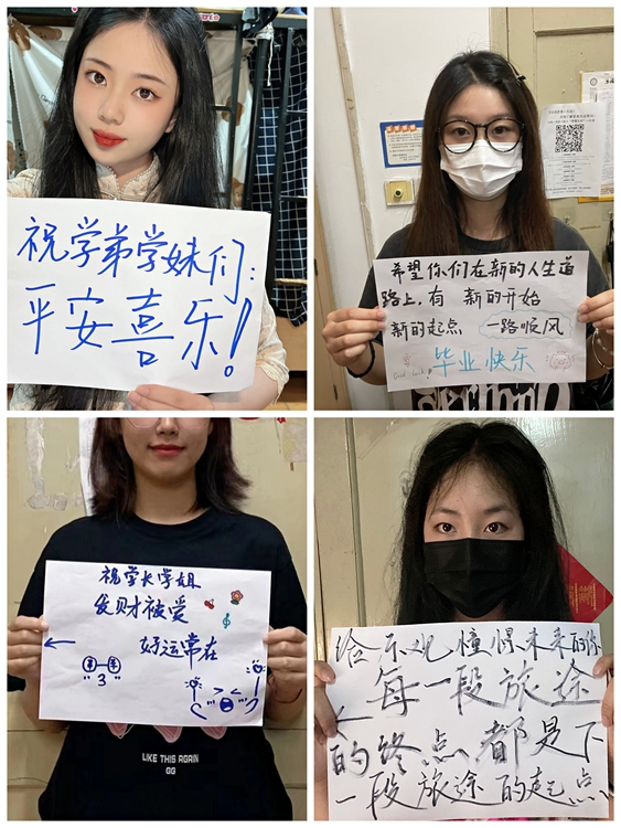 此次活动在学生公寓内,采用线下、线下相结合的形式开展。通过前期征集,邀请学生代表采用手写祝福、视频等形式勇敢表达在公寓学习生活期间需要感恩的“邻居”,并送上自己诚挚的祝福。每一份文字、每一张照片都暗藏着深厚的感情,每句话都包含着在校期间同学们邻里之间深厚的情谊。学院通过新媒体平台进行推送和展示,希望为学院学生开展感恩教育的同时,为各位毕业生们带去启发和勇气。