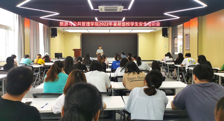 为积极贯彻落实浙江省教育厅关于暑期学生安全的文件精神,进一步强化暑期留校学生安全法治意识,落实校园常态化疫情防控工作要求,切实提高学生安全意识,确保学生度过安全健康的暑期留校生活,6月24日上午,旅游与公共管理学院召开了2022年暑期留校学生安全培训会议,学院学生工作负责人、辅导员以及申请暑期留校的学生参加会议。