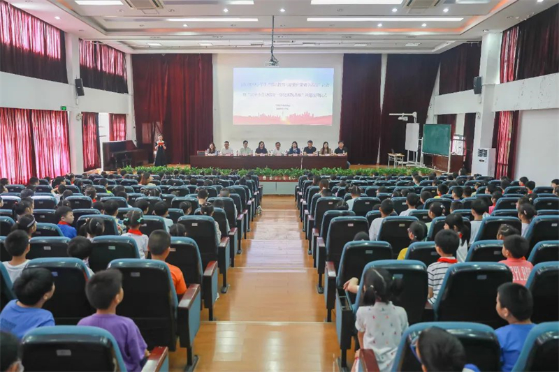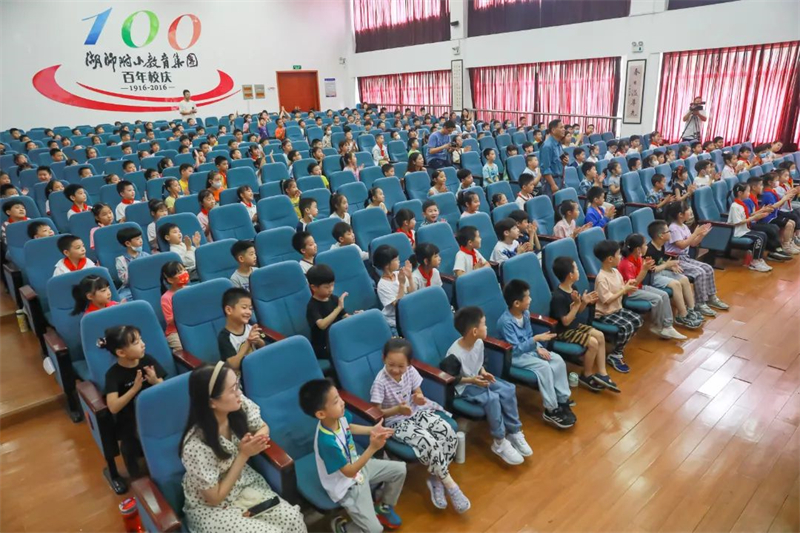 6月23日,活动首站在湖师附小教育集团幸福里校区正式启动。校党委委员、副校长陆勤丰,湖师附小教育集团党委书记、总校长李成芳等出席仪式,共同为“大中小劳动教育一体化实践基地”揭牌。学校教务处、实训处、创业学院负责人以及由教授、博士等专任教师组成的“劳动教育和职业启蒙”专家服务团成员,湖师附小领导班子成员、一年级全体师生近350人参加活动。