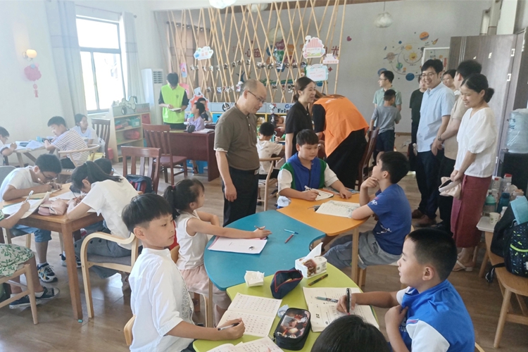 在走访过程中,叶主认真听取了南浔区旧馆街道社工站工作人员对“春泥计划”开展情况的介绍,实地走访查看了“春泥计划”的活动场地,看望慰问了机电与汽车工程学院的学生志愿者、街道志愿者以及参加活动的孩子们,并与他们进行亲切交谈,详细了解志愿者们开展活动的进展情况、食宿条件以及存在的问题困难等,叮嘱大家在社会实践过程中一定要注意安全,同时也勉励同学们要坚定理想信念,积极贡献青春力量。走访过程中,叶主还悉心询问了小朋友们的学习情况和对未来的梦想,倾听孩子们的心声,鼓励大家都要积极努力学习。